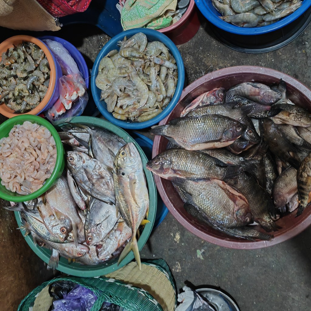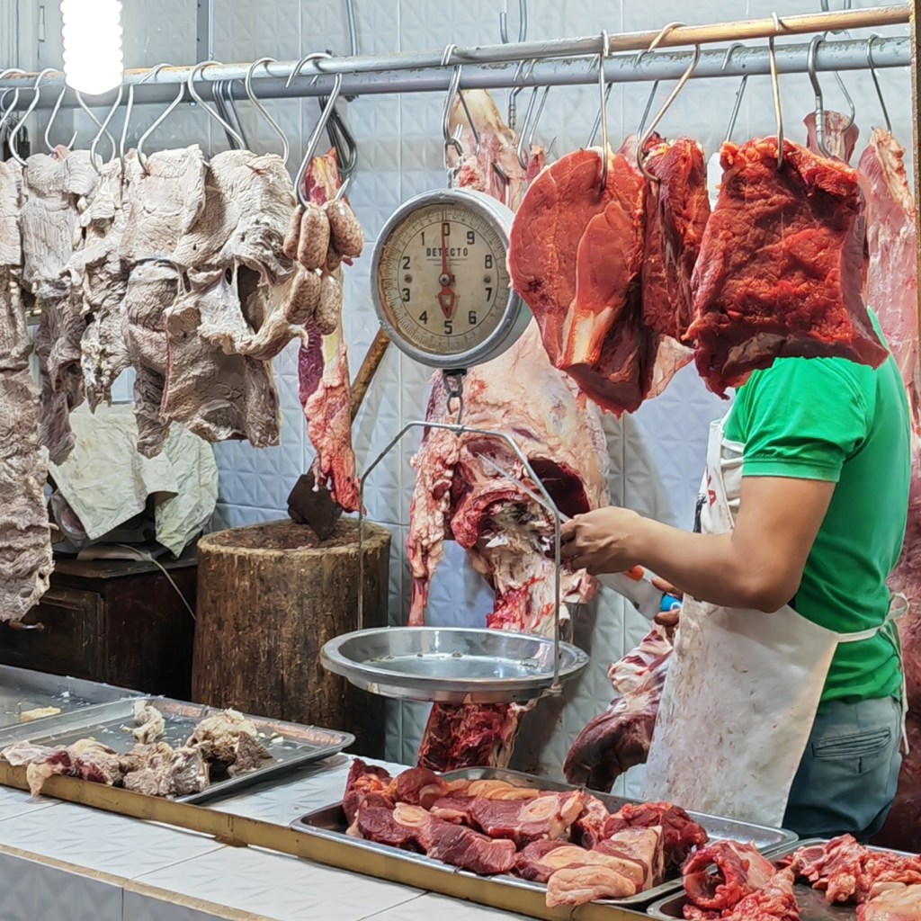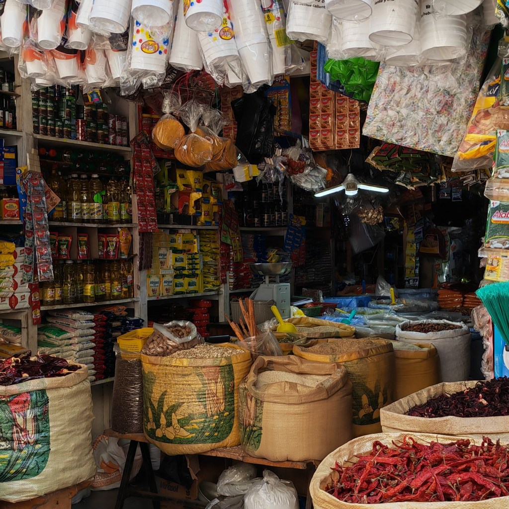 Nous allons ensuite au marché couvert. Tout ce que j’aime. Fourmillement de femmes en costume traditionnel orné d’oiseaux brodés, vendeuses et vendeurs occupent chaque centimètre carré de ce grand centre commercial… et les affaires se poursuivent dans la rue, même si aujourd’hui ce n’est pas le jour du grand marché.