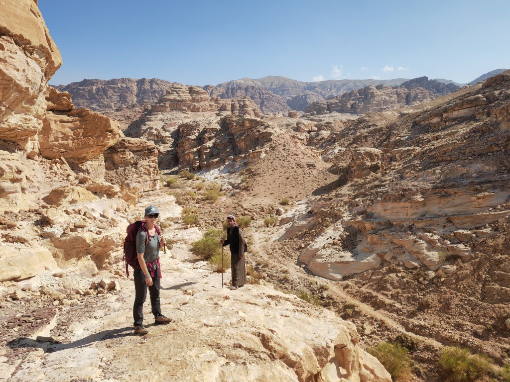 C’est parti pour l’aventure ! Ce matin nous commençons notre marche sur le Jordan trail, un itinéraire qui traverse le pays du nord au sud. Bien sûr, nous n’en parcourrons qu’une toute petite partie entre Petra, à l’entrée du Wadi Sabra et le village de Abassiya au bout du Wadi Araba.