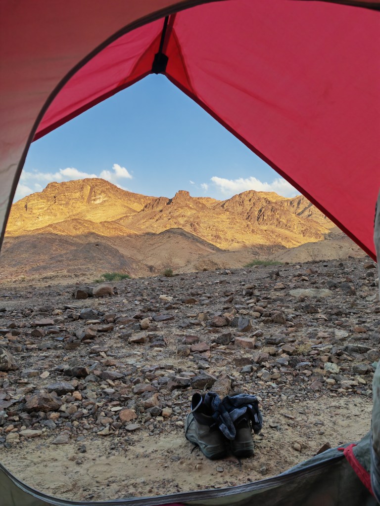 Pas de pression pour le réveil, on a le temps car la journée est bien plus courte qu’hier. Nous prenons le petit déjeuner dans la lumière dorée : houmous, pita, huile d’olive, zaatar, yaourt et fèves cuisinées.