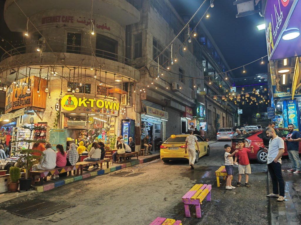 Amman est construite sur une multitude de collines et de vallons qui sont autant de quartier avec chacun leur personnalité. Ça monte, ça descend : autant dire que ce n’est pas une ville tendre pour les mollets !